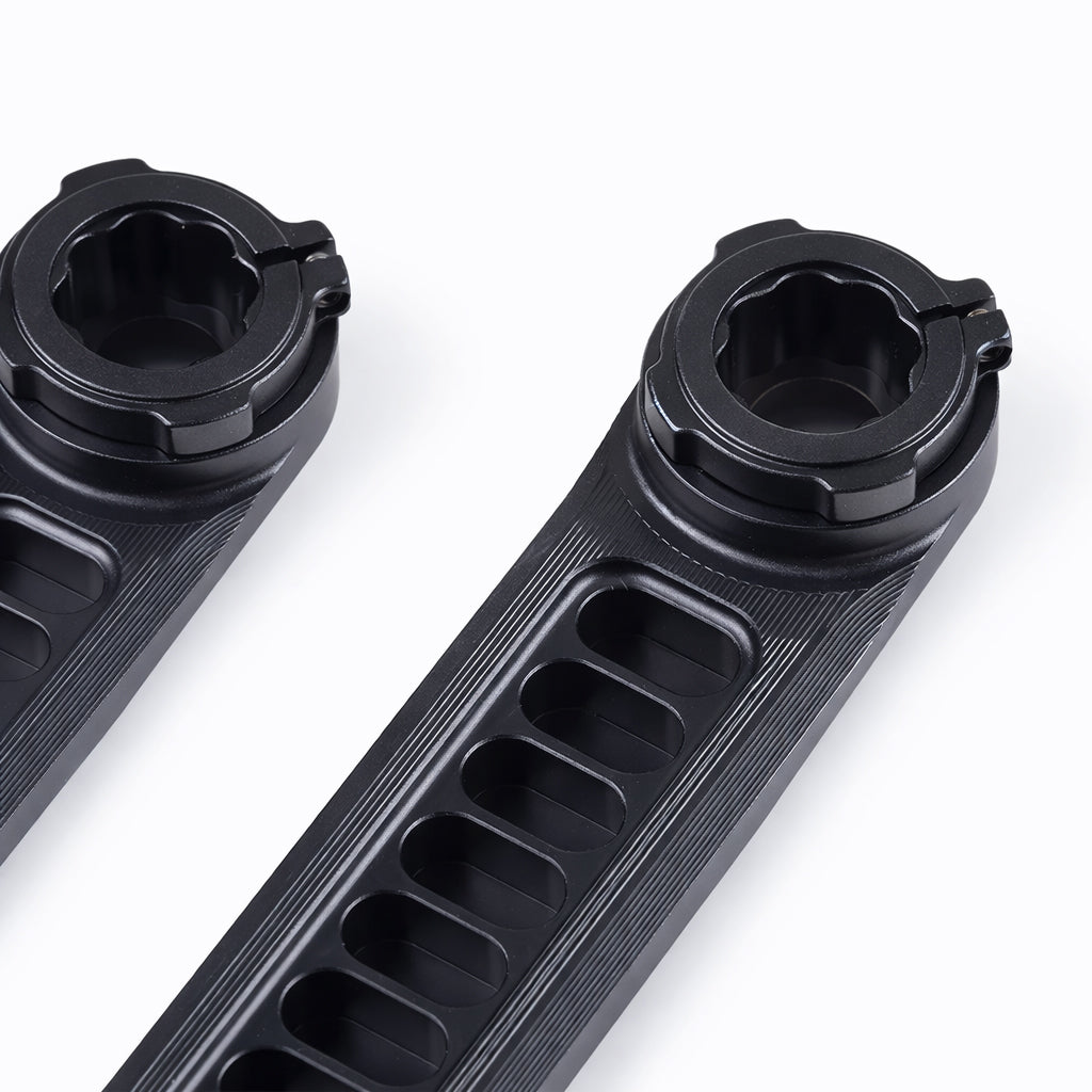 Punchy starts. Clean power. This CNC machined, hollow crankset is built to take high cadence road runs, then eat rough gravel without folding. 6061 alloy arms keep it solid. A 7075 alloy spindle keeps it tight when you are laying down torque.