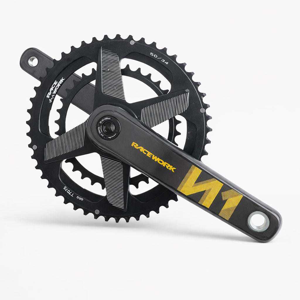 Carbon arms. Stiff axle. Clean power transfer when you are out of the saddle and hunting speed. Built for 11 and 12 speed road setups with compact to standard gearing options.